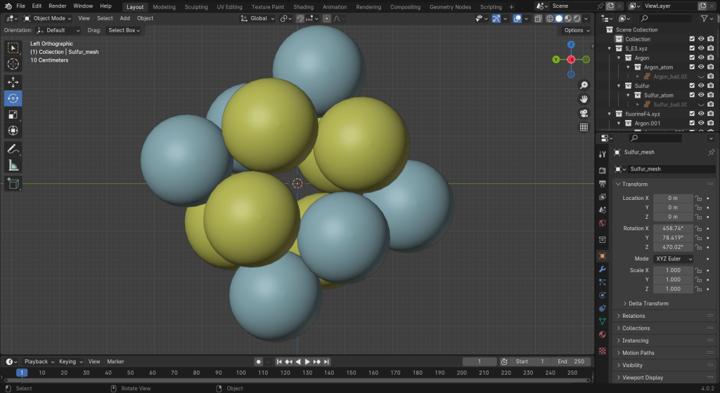 Carbon has a .xyz file for the baryon coordinates. The blue proton uses a symbol “Ar” and each yellow neutron uses a symbol “S” to comply with Blender atomic utilities that I already activated from my Blender menu. These notes could help: