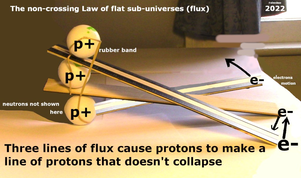 The experiment shows that protons must touch protons when in a cluster. This leads to the conclusion that a line of several protons can form. With help from electrons that have flat lines of flux, the protons are forced into non-random lines and rings of protons.