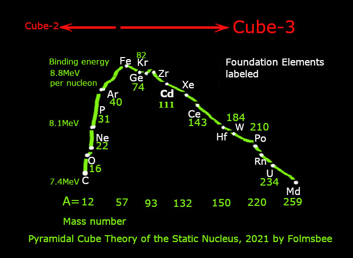 The precision of the sphere-stacking theory is amazing when looking at a graph of average binding energy per nucleon versus A, mass number. The foundation elements occur at points where the curve slope changes (link Fig 2a near paper #13). The slope is positive below Fe and negative above Fe on the graph. The encyclopedia link shows in the second graph, what I write about slopes, next.