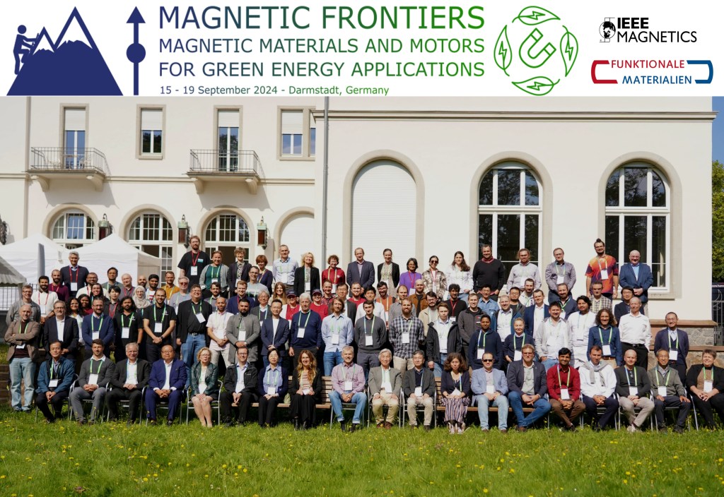 Figure 6: Poster Session in Darmstadt, Germany on September 17, 2024. Technical University Darmstadt cooperated with the Institute of Electrical and Electronics Engineers at a conference with 109 attendees. From Japan, was the co-inventor of the neodymium-iron-boron magnet. He is Masato Sagawa. Fig. 6 poster was for the IEEE Magnetic Frontiers 2024: Magnetic Materials and Motors for Green Energy Application, with Technical University of Darmstadt partners. Black neutrons and white proton beads. Color codes given below for the periodic table.